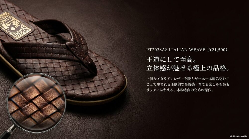 王道にして至高の高級感【PT202SAS ITALIAN WEAVEトングサンダル】