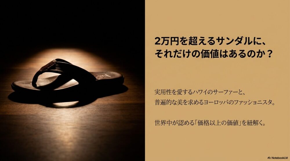 多くの人がビーチサンダルと聞いて思い浮かべるのは、おそらくゴム製で、ワンシーズンで履き潰す安価で使い捨てのイメージではないでしょうか。アイランドスリッパは、その常識を根底から覆しました。