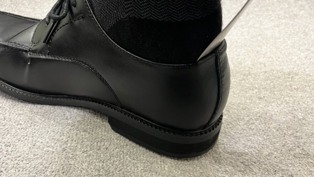 一方で、踵がゆるすぎたり、シューホーンが抜けなかったらサイズが合っていません。履いた瞬間の「シュポッ」っという音が聞こえるまで、納得のいく試し履きを繰り返してください。