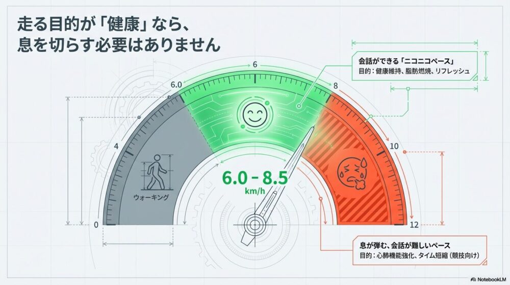 | ペース | 会話ができる程度 | 息が弾む、会話が難しい |