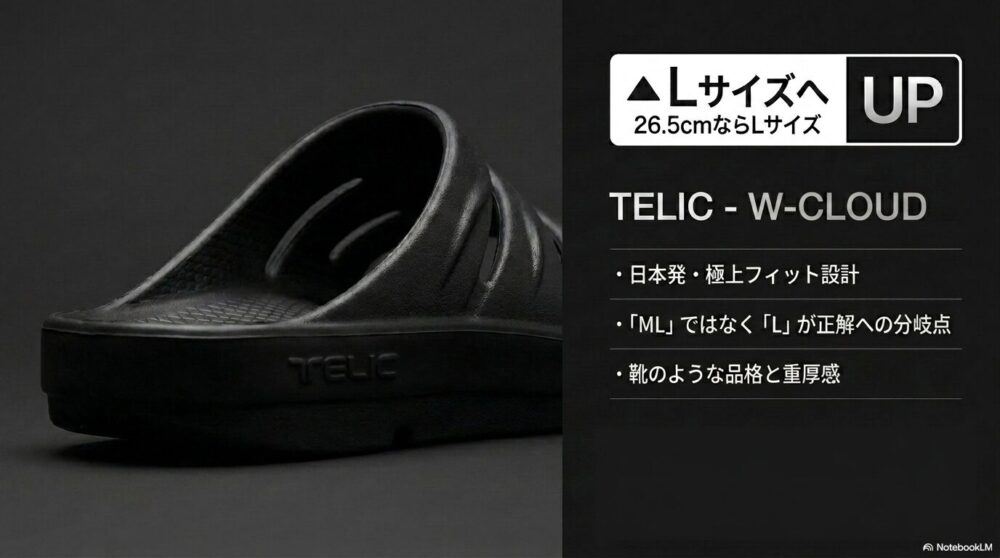 • サイズ表記に注意:OOFOS(US表記確認)・TELIC(Lサイズ選択)