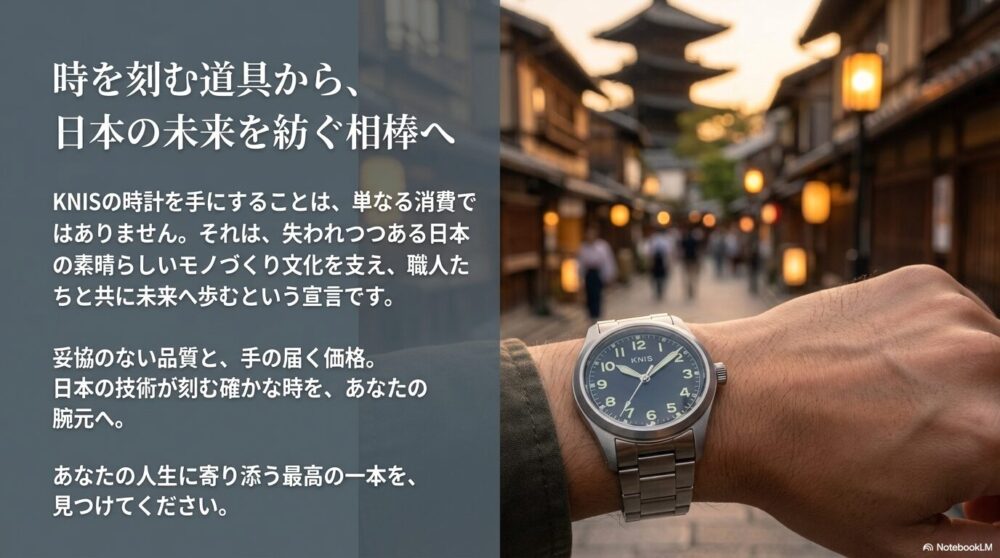 ここまで、京都発の腕時計ブランド「KNIS(ニス)」の魅力と、おすすめのモデルについて詳しくお伝えしてきました。
