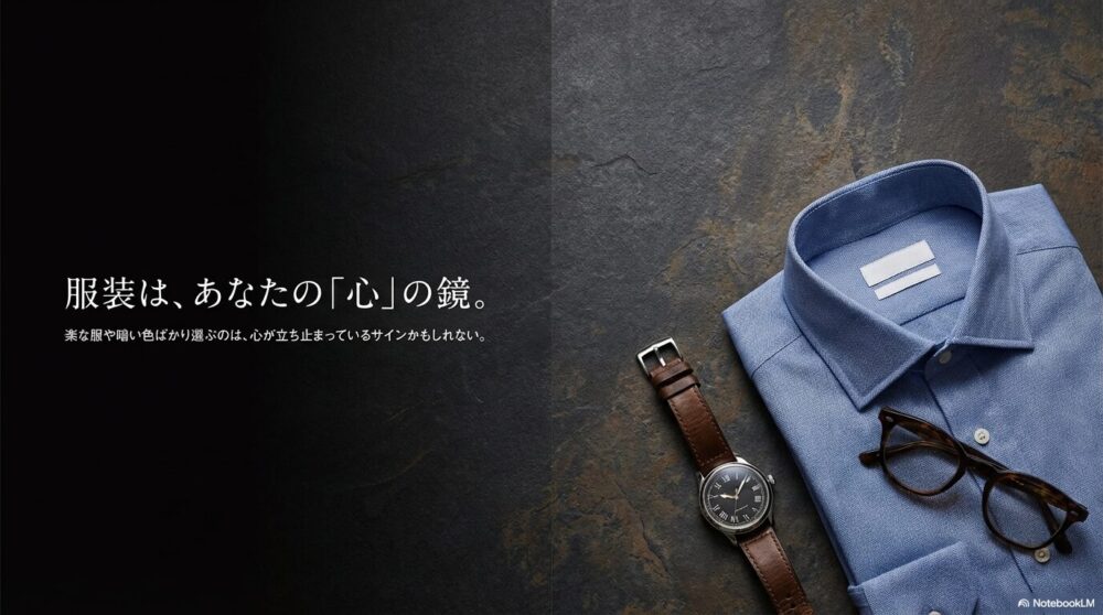 「なんか最近、暗い色の服ばっかりになってきたな…」、「だんだん、ストレッチの効いた楽な服しか着なくなってきたな…」。これは、ファッションに自分の生活の変化が現れているということです。
